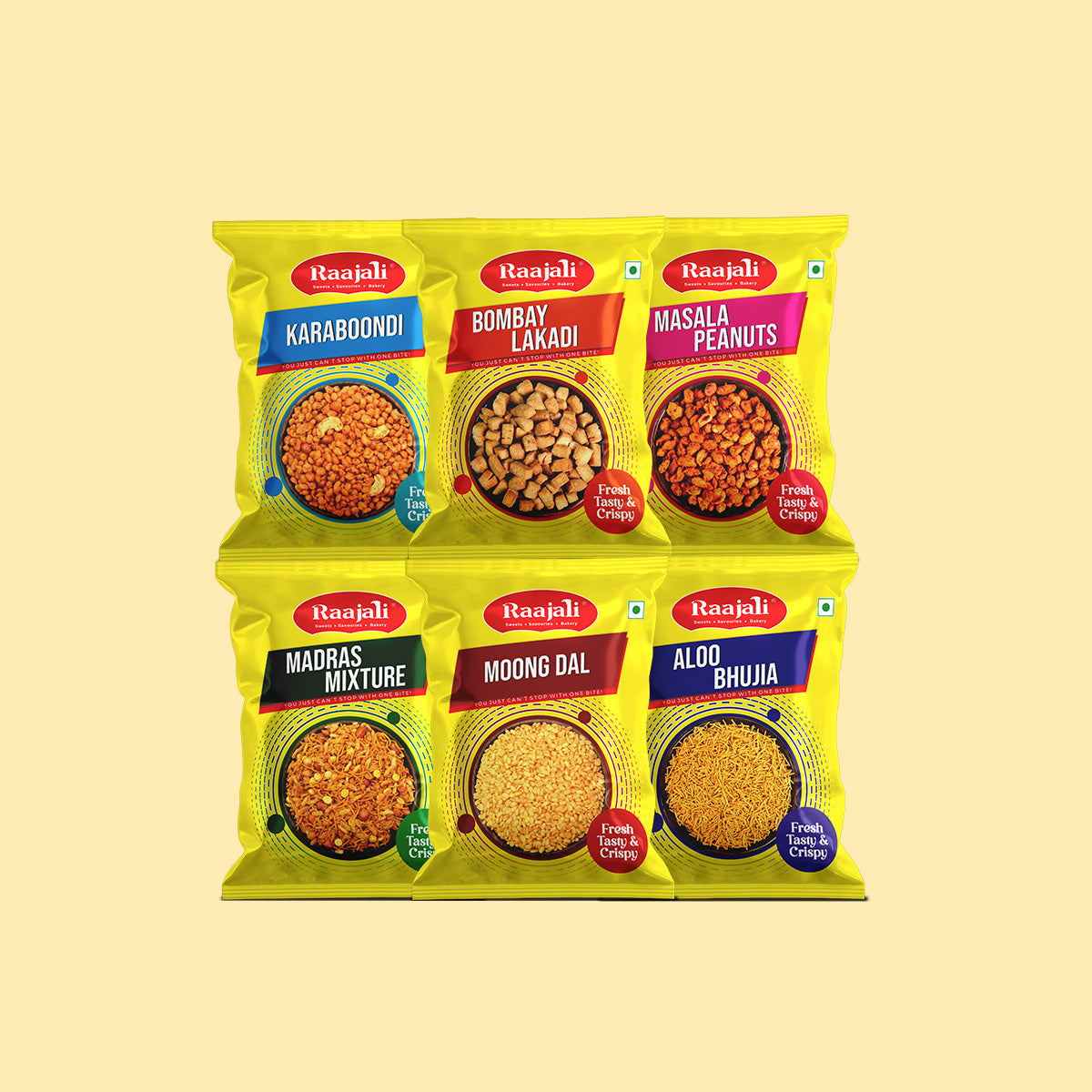 Assorted Chota Packs (Bombay Lakadi, Kaara boondhi, Moong Dal, Aloo Bhujia, Masala Peanut, Madras Mixture - Each 30gms )