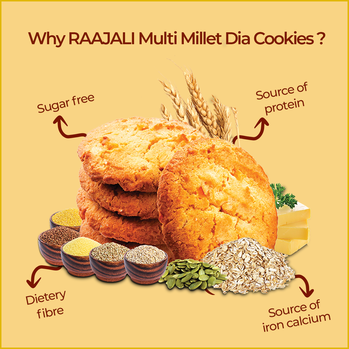 Indulge in guilt-free snacking with Multimillet Dia Cookies, a wholesome treat packed with the goodness of multiple millets.