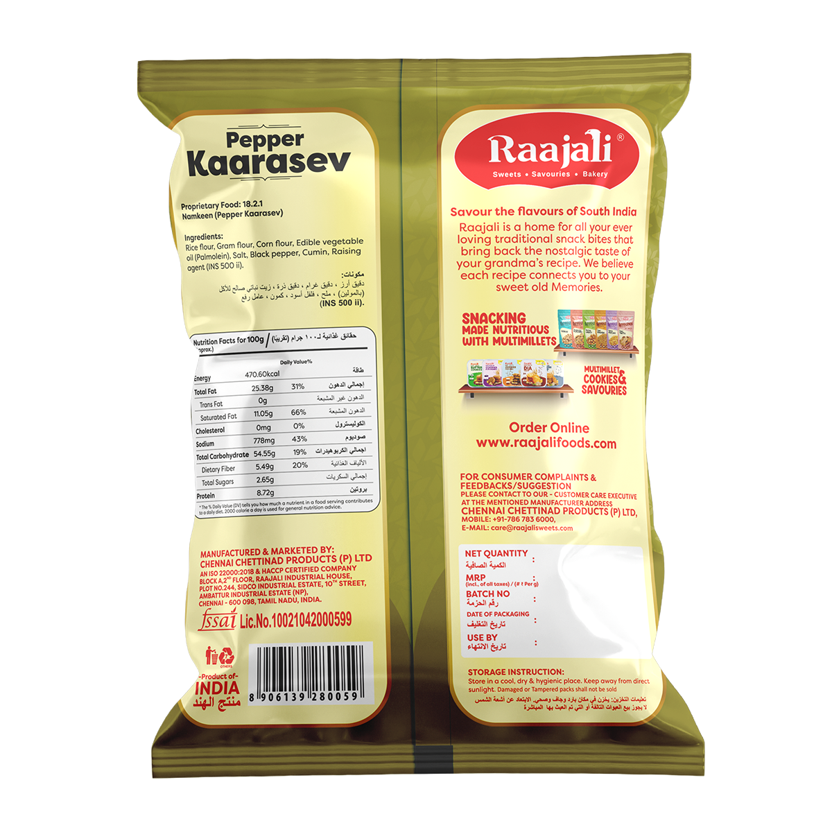 NEO TECHNOLOGY: All savouries are processed with new NEO TECHNOLOGY which controls the oil usage ensuring our products are free from transfat and cholesterol.
