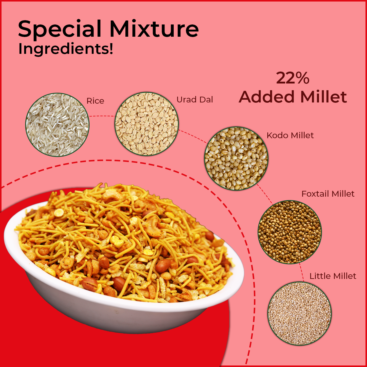 This unique blend of millets offers a tasty, crunchy alternative to traditional snack mixes.