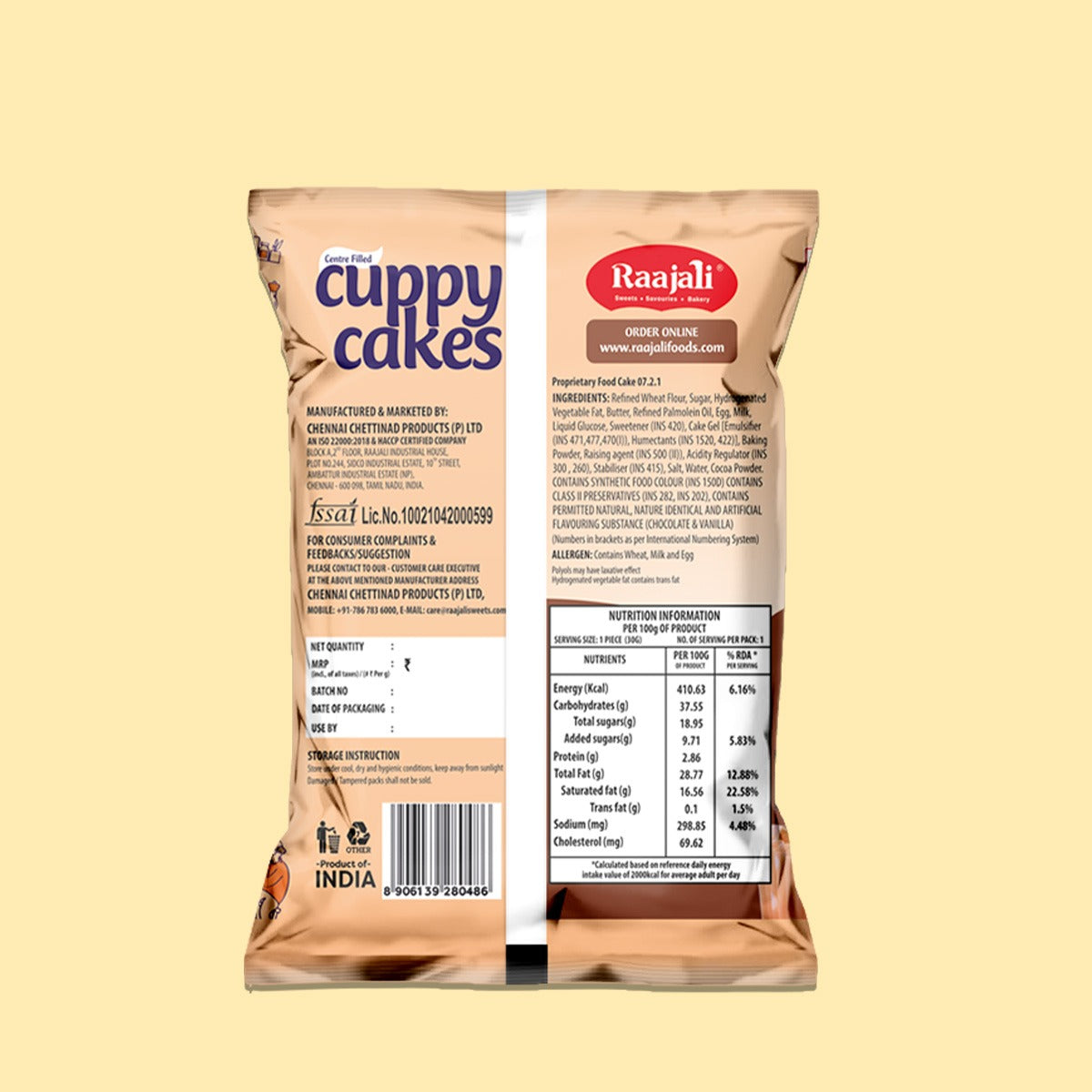 RAAJALI CUPPY CAKE - CENTRE FILLED MUFFIN - CHOCOLATE (30G PER PACK)