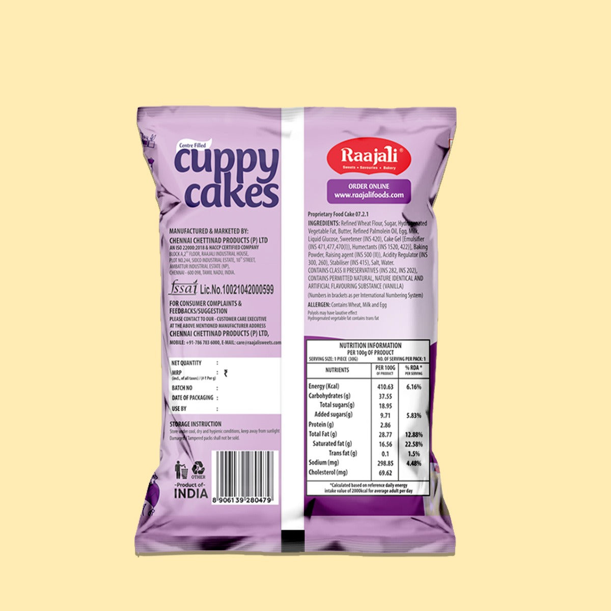Experience a burst of vanilla goodness with Raajali Cuppy Cake, the ultimate indulgence in every bite. Each 30g pack features a delightful vanilla-filled muffin, meticulously crafted to tantalize your taste buds with its moist texture and rich flavor.