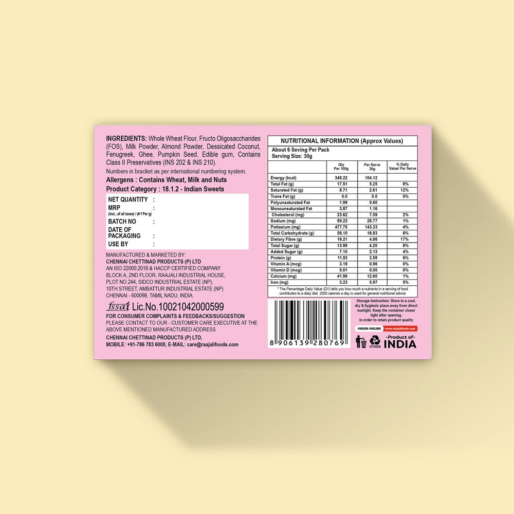 - Raajali Dia Ladoo is Made with a blend of wholesome millets, natural sweeteners, and carefully selected ingredients