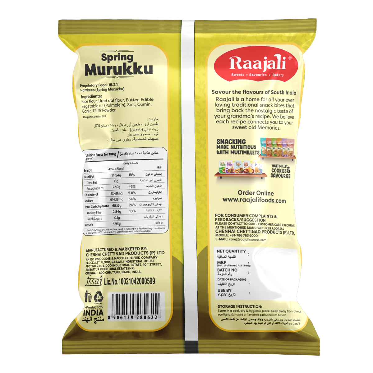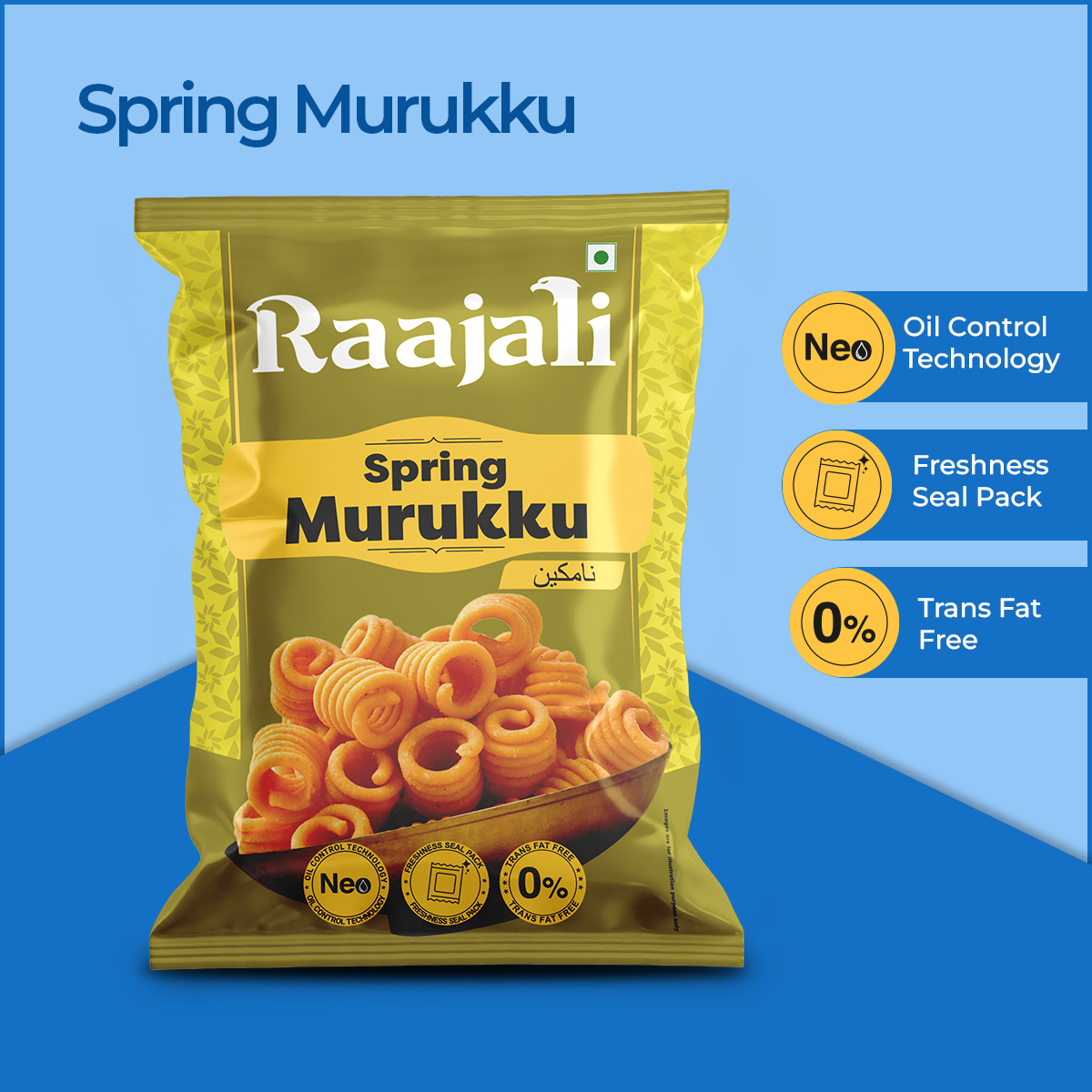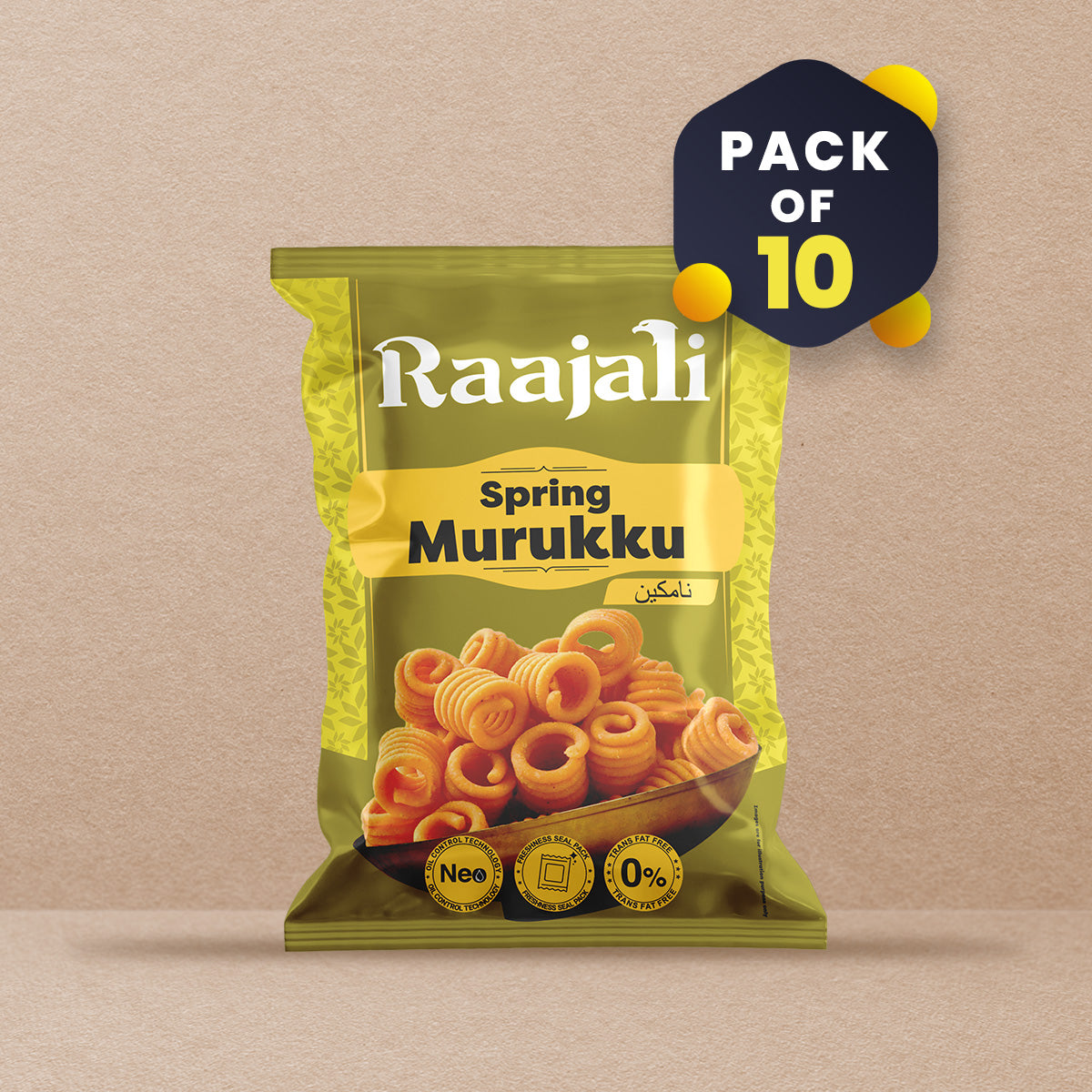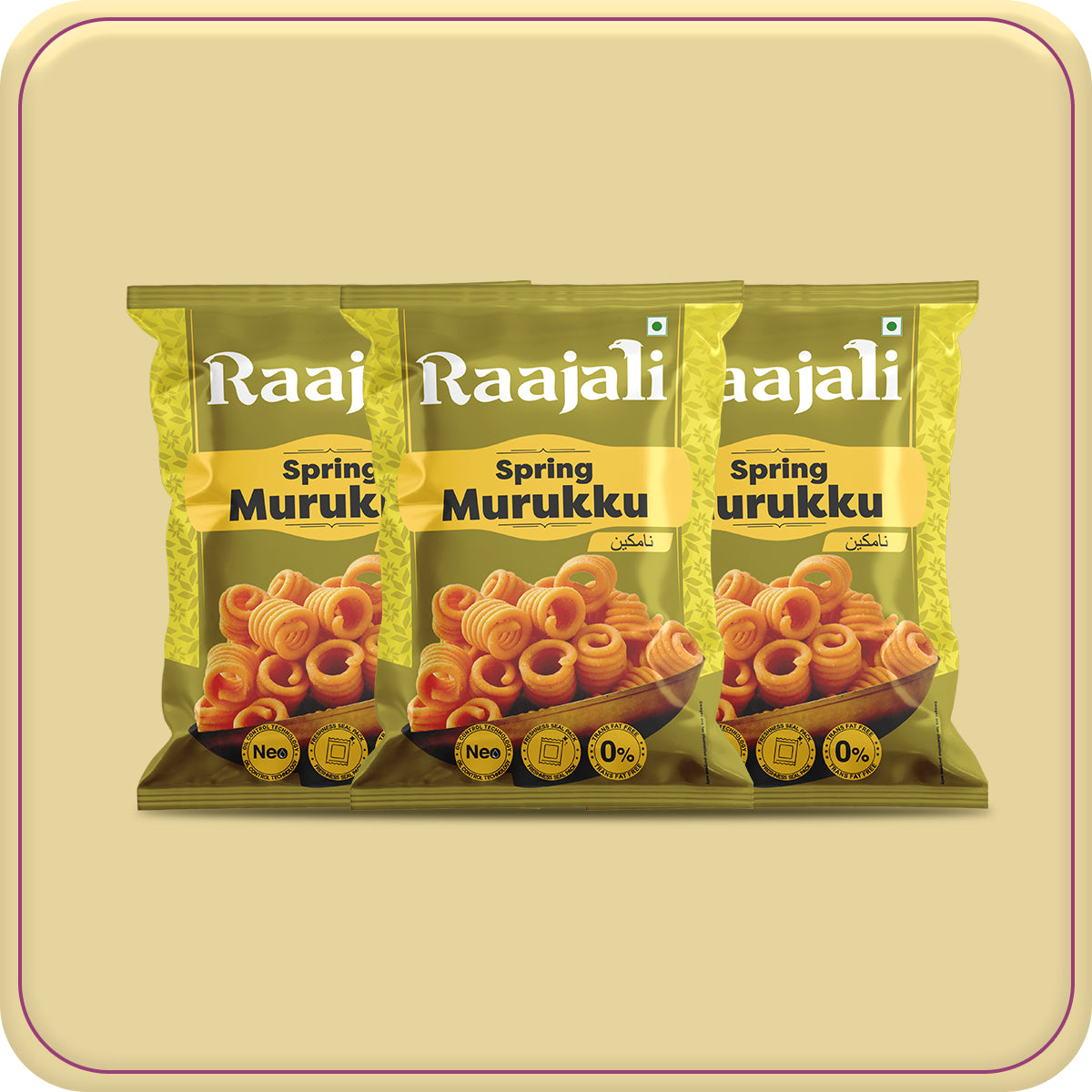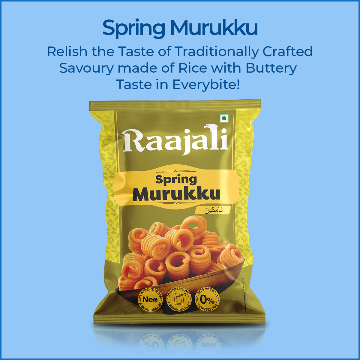 Welcome to our delectable world of Raajali - SPRING MURUKKU! Indulge in the crispy goodness of our meticulously crafted snack, each pack containing 150 grams of pure delight. Bursting with traditional flavors and a spring-like freshness, our SPRING MURUKKU promises to tantalize your taste buds with every crunchy bite.