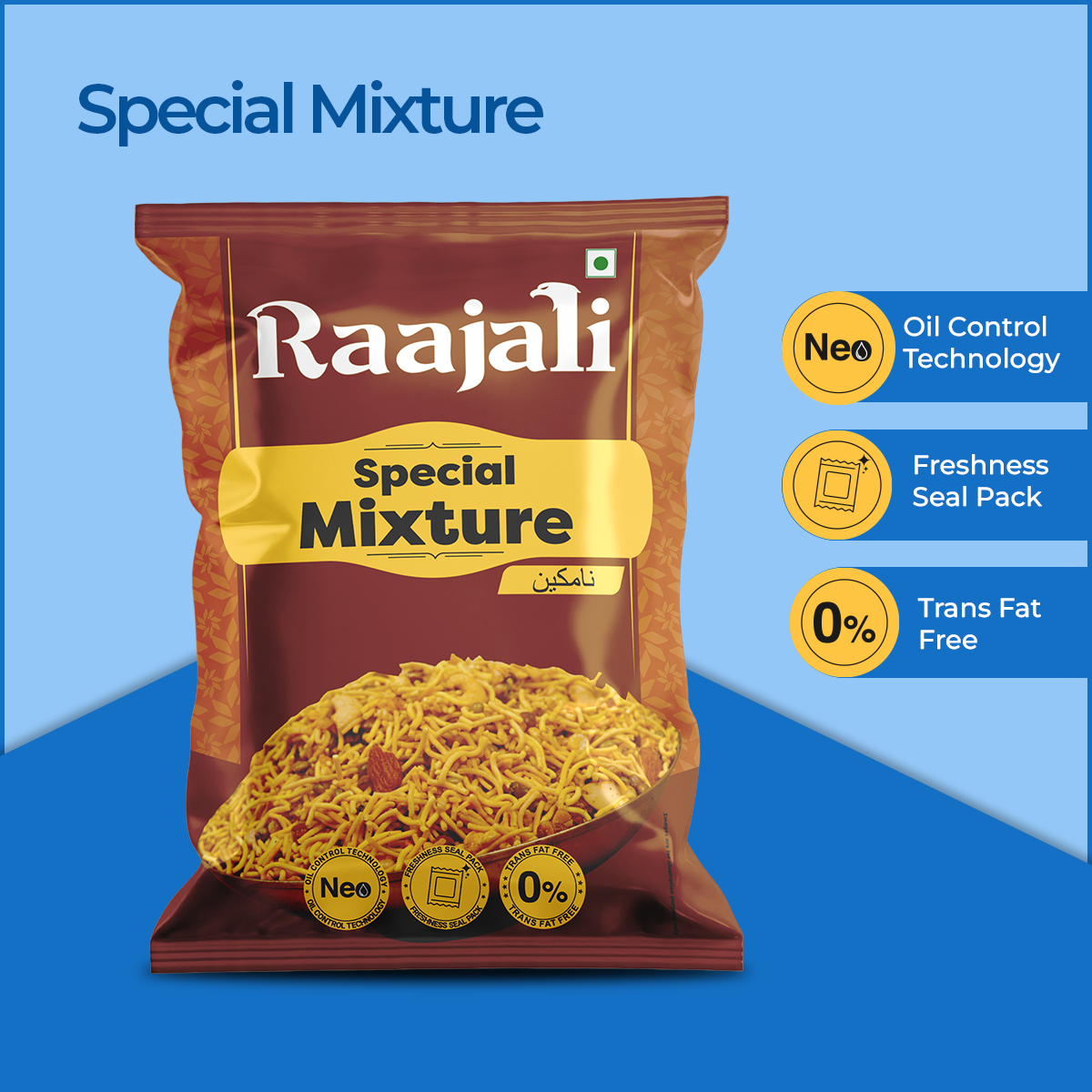 Indulge in a delightful crisp journey with Raajali's Special Mixture, a savory snack that masterfully blends traditional flavors with a taste touch.